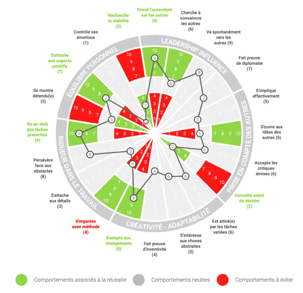 Le test GOLDEN analyse les résultats obtenus pour identifier les domaines dans lesquels le bénéficiaire excelle et les types de rôles qui pourraient lui convenir.